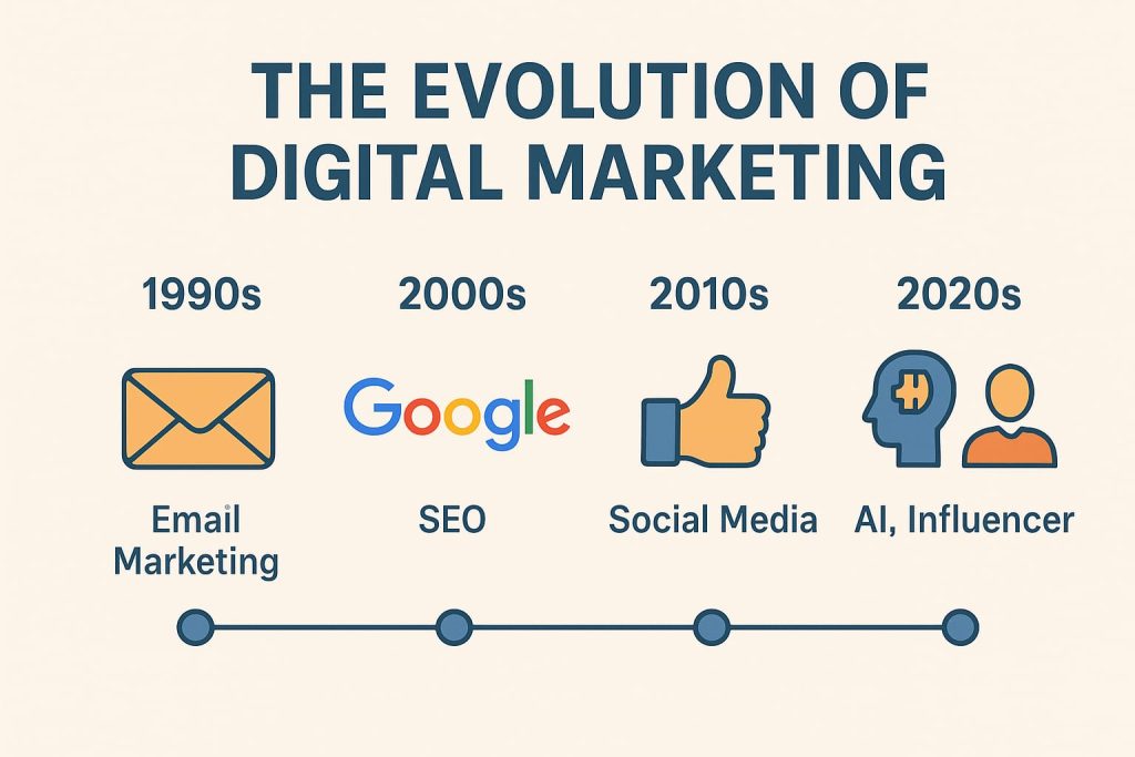 - 2020s – Artificial Intelligence, voice search, influencer marketing, and short-form video content.